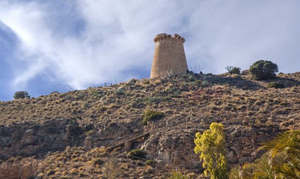 Se levanta en la sierra del Cabo de Santa Pola a unos 80 metros sobre el mar.
